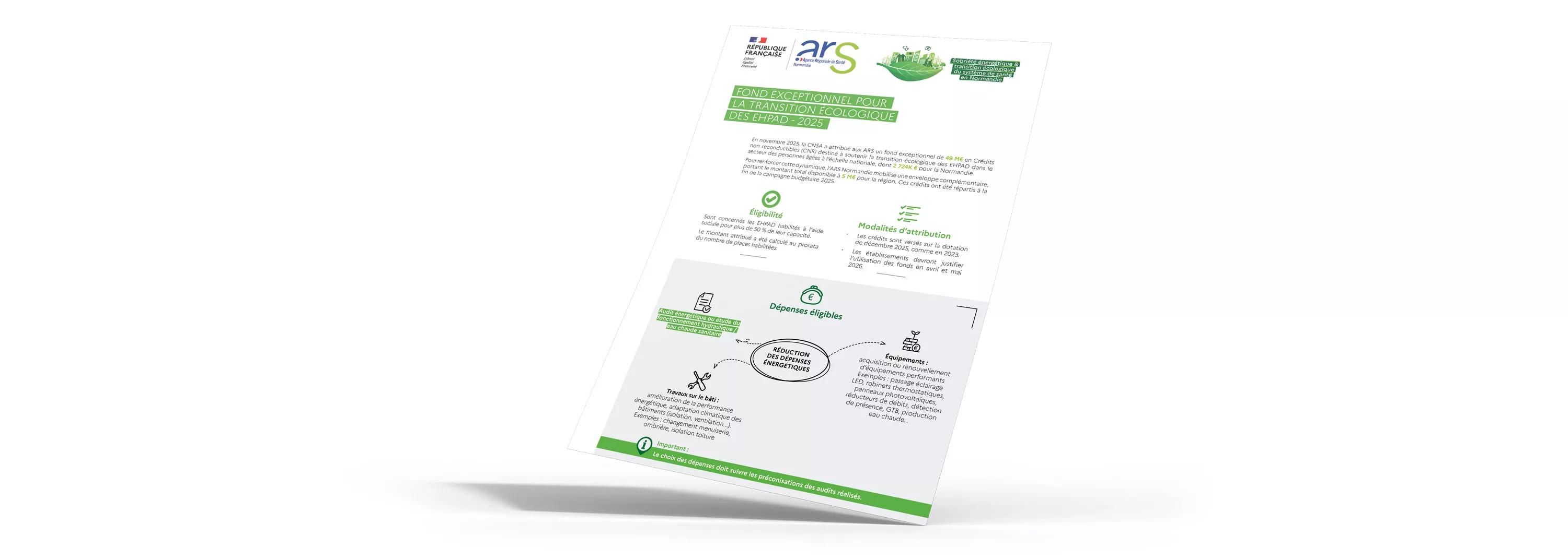 En novembre 2025, la CNSA a attribué aux ARS un fond exceptionnel de 49 M€ en Crédits non reconductibles (CNR) destiné à soutenir la transition écologique des EHPAD dans le secteur des personnes âgées à l’échelle nationale, dont 2 724K € pour la Normandie.