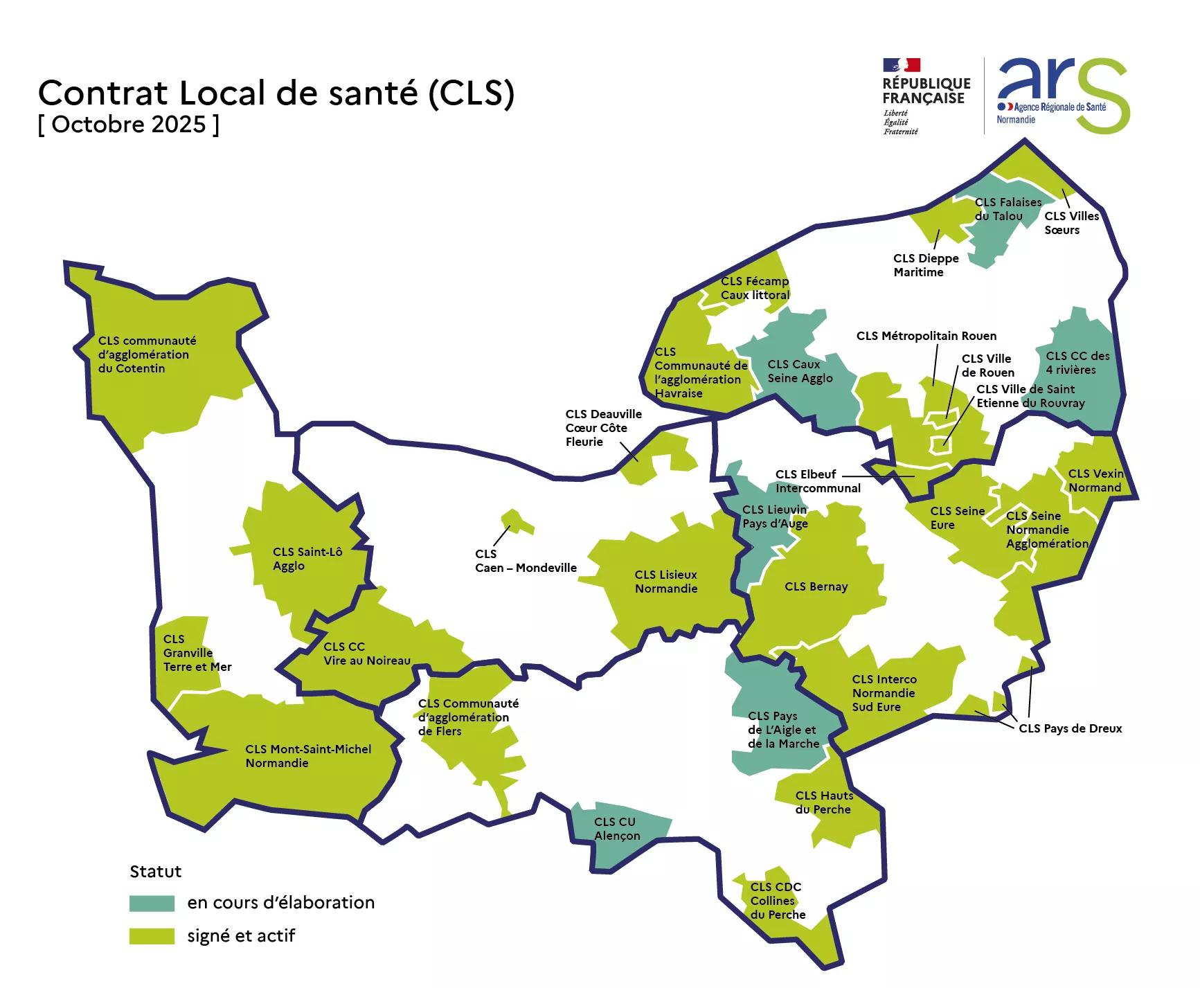 25 CLS sont signés et actifs soit plus de 50 % de la population normande couverte par un CLS signé (chiffres en octobre 2025).