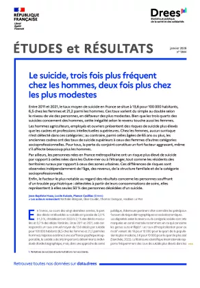 Selon le 6ème rapport de l’observatoire national du suicide , publié en février 2025, le taux de suicide en France est de 13,3 décès pour 100 000 habitants, un niveau trois fois plus élevé chez les hommes que chez les femmes (20,8 et 6,3 pour 100 000, respectivement). En baisse constante depuis le milieu des années 1980, le taux de suicide parait avoir atteint un niveau plancher au tournant de la décennie 2020. Une première hausse du taux de suicide enregistrée en 2018 relevait d’un artefact, puisqu’elle était due en grande partie à l’amélioration de la collecte des données, mais le taux de décès par suicide n’a pas repris sa diminution depuis. Au contraire, il est légèrement supérieur en 2022 (13,3) à ce qu’il était en 2021 (13,0) et 2020 (13,1).