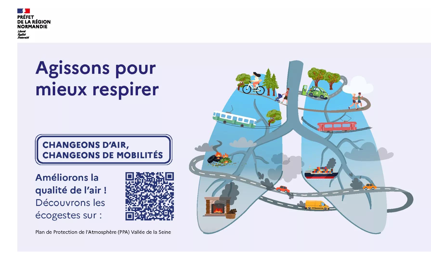 Réduire la pollution de l’air passe par des gestes simples à intégrer dans nos habitudes quotidiennes. Dans le cadre du Plan de Protection de l’Atmosphère (PPA) de la Vallée de la Seine, la Direction régionale de l'environnement, de l'aménagement et du logement (DREAL) Normandie mène plusieurs actions de sensibilisation auprès des particuliers sur la qualité de l’air.